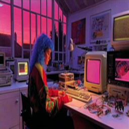 Afternoon settles in. She runs a generative process, parameters set tight around proportion and movement. Outputs flicker past—most collapse under inspection. A few hold. She selects them, anchors their states with signatures, releases them. They join the flow.